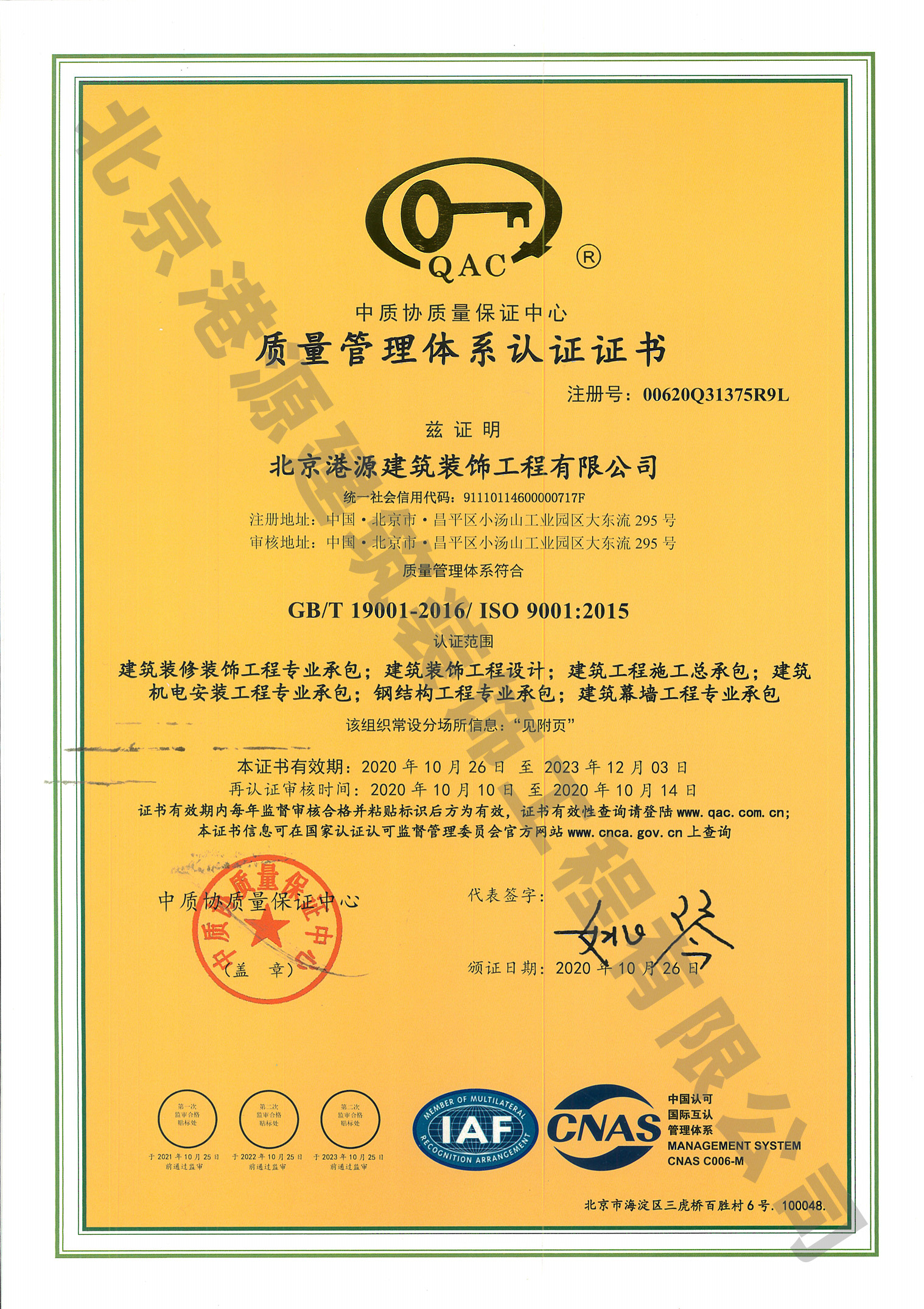 質(zhì)量管理體系認證證書(shū)